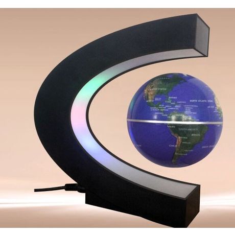 Un glob pamantesc care sfideaza orice lege a gravitatiei,este un cadou magic si plin de mister. Globul leviteaza in aer in mijlocul unui suport in forma de semiluna. Functioneaza pe baza unui camp electromagnetic.