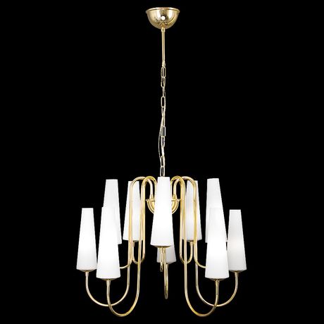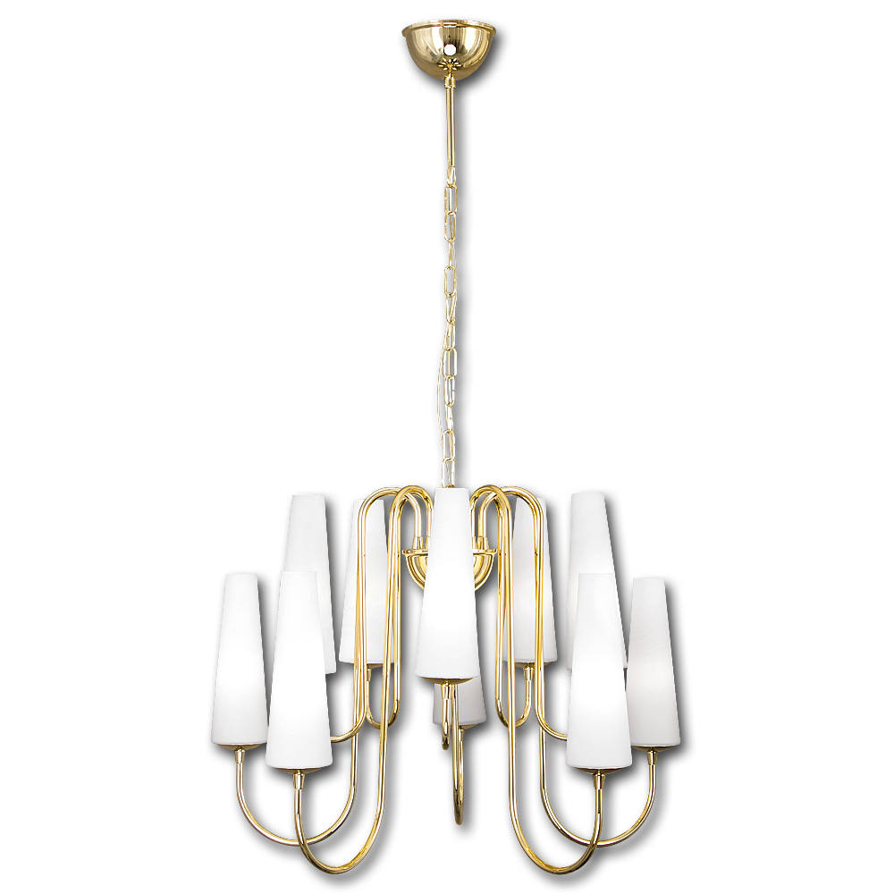 Candelabru 10x40W, finisaj auriu, abajur alb