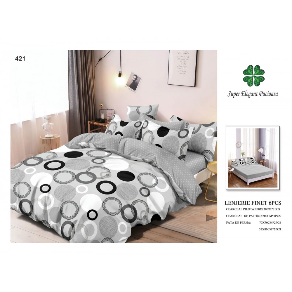 Set lenjerie de pat din bumbac tip finet, compusa din 6 piese: